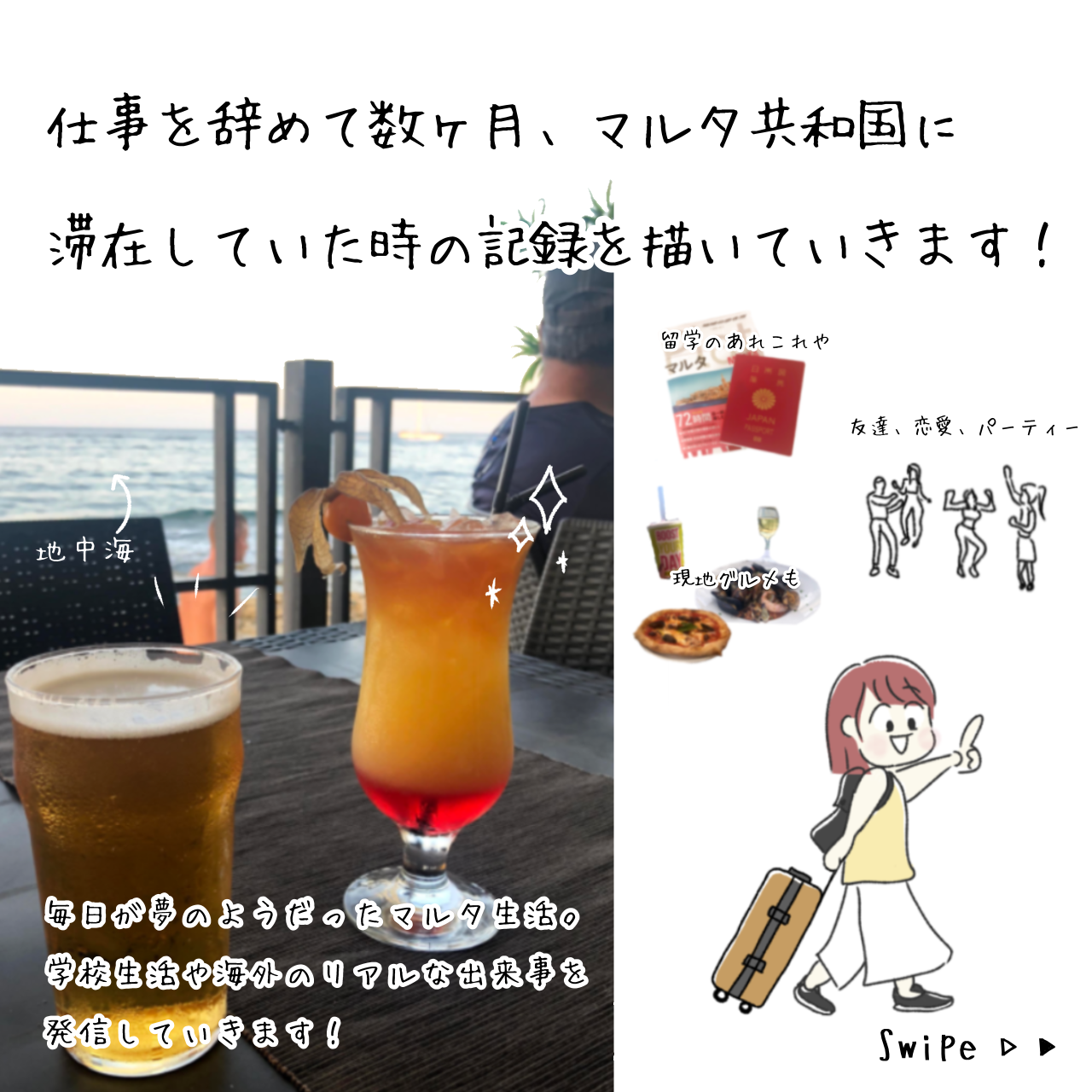 2022年10月22日 【~地中海に浮かぶ美島~マルタ島滞在記!①】 海外滞在日記のマルタ島版を描きました。 数年前に会社員をやめて、人生休暇としてマルタ島🇲🇹に滞在していたときの話。 毎日が夢のようだったマルタ生活。一生忘れられない体験や思い出を、エッセイ漫画として発信していきます😊✨ 留学、国際恋愛、友達事情、おすすめスポットなどを交えて海外ならではの体験談をどんどん描いていきます😇 リアルな留学事情、海外あるあるなども発信していきますので、楽しんでもらえたら嬉しいです!✨ 続きを読む。第二話はこちら!⇓ タグ :#マルタ#エッセイ漫画#4コマ漫画#海外旅行#留学#円安#ヨーロッパ 「マルタ島滞在記」カテゴリの最新記事 < 前の記事次の記事 > コメント コメントフォーム 名前 コメント 記事の評価 リセット リセット 顔 星 情報を記憶 コメントを投稿する